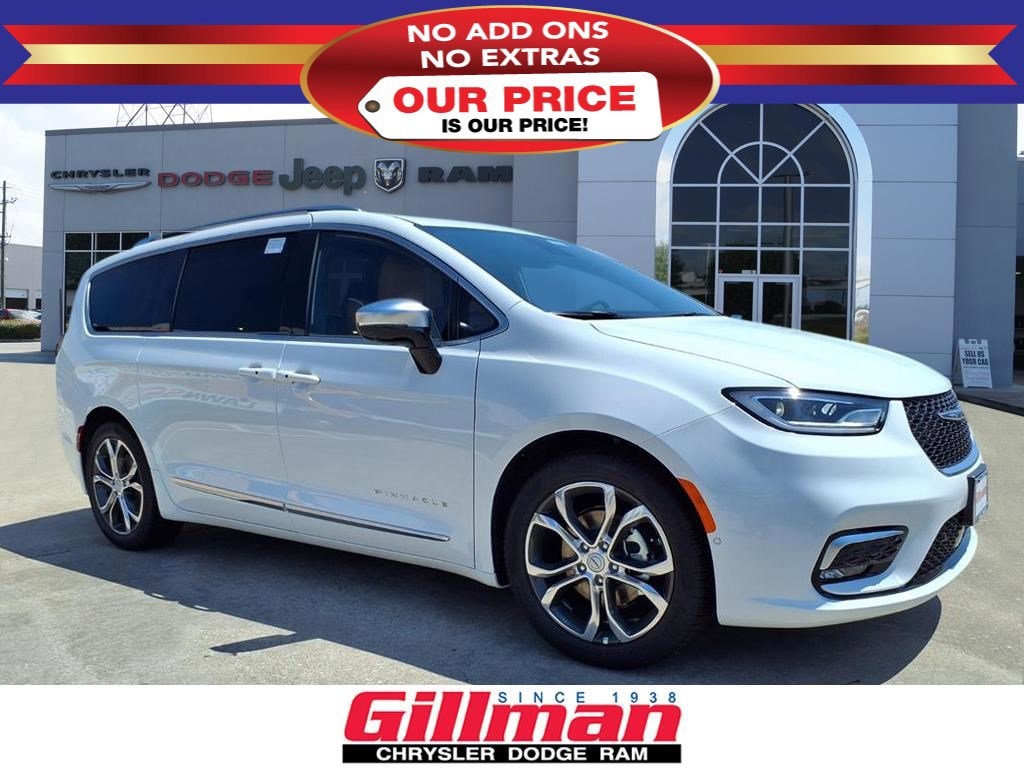 Gillman Chrysler Jeep Dodge Ram is excited to offer this wonderful-looking 2026 Chrysler Pacifica Pinnacle in Bright White Clearcoat with Sepia/Black interior. Well equipped with Quick Order Package 27S, 19 Speakers, 3.25 Axle Ratio, 3rd row seats: split-bench, 4-Wheel Disc Brakes, A/V remote, ABS brakes, Air Conditioning, Alloy wheels, AM/FM radio: SiriusXM 360L, Apple CarPlay/Android Auto, Audio memory, Auto-dimming door mirrors, Auto-dimming Rear-View mirror, Automatic temperature control, Bodyside moldings, Brake assist, Bumpers: body-color, Compass, Delay-off headlights, Driver door bin, Driver vanity mirror, Dual front impact airbags, Dual front side impact airbags, Electronic Stability Control, Emergency communication system: Chrysler Connect, Four wheel independent suspension, Front anti-roll bar, Front Bucket Seats, Front Center Armrest, Front dual zone A/C, Front fog lights, Front reading lights, Fully automatic headlights, Garage door transmitter, harman/kardon® Speakers, Headphones, Heated door mirrors, Heated front seats, Heated rear seats, Heated steering wheel, Illuminated entry, Knee airbag, Low tire pressure warning, Lumbar Pillow, Memory seat, Navigation System, Occupant sensing airbag, Outside temperature display, Overhead airbag, Overhead console, Panic alarm, ParkView Rear Back-Up Camera, Passenger door bin, Passenger vanity mirror, Power door mirrors, Power driver seat, Power Liftgate, Power moonroof, Power passenger seat, Power steering, Power windows, Premium Leather Trimmed Bucket Seats, Radio data system, Radio: Uconnect 5 Nav w/10.1" Display, Rain sensing wipers, Rear air conditioning, Rear reading lights, Rear window defroster, Rear window wiper, Reclining 3rd row seat, Remote keyless entry, Roof rack, Security system, Sepia Seat Color, Speed control, Split folding rear seat, Spoiler, Steering wheel mounted audio controls, Tachometer, Telescoping steering wheel, Tilt steering wheel, Touring Suspension, Traction control, Trip computer, Turn signal indicator mirrors, Variably intermittent wipers, Ventilated front seats, Voltmeter, and Wheels: 20" x 7.5" Paint/Polish Aluminum Design 2.