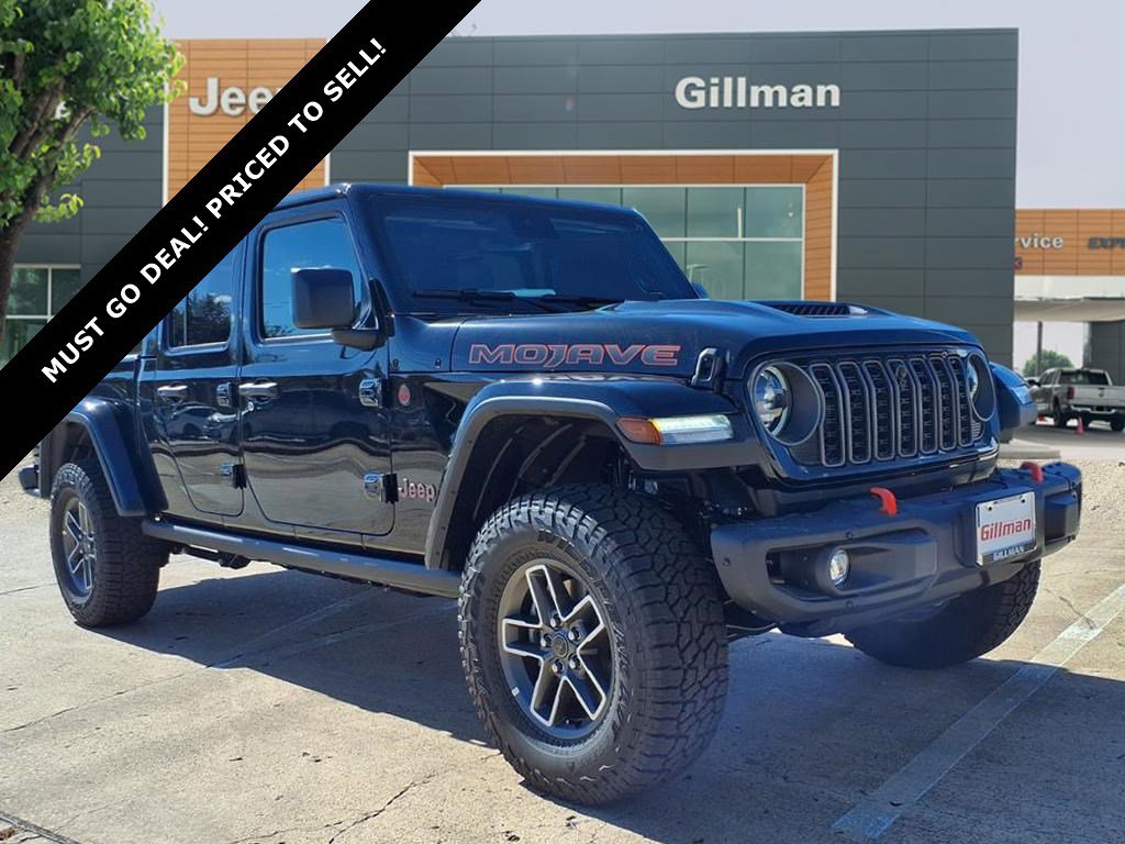 Gillman Chrysler Jeep Dodge Ram is pumped up to offer this gorgeous-looking 2025 Jeep Gladiator Mojave in Black Clearcoat with Black interior. Well equipped with Quick Order Package 24A Mojave X (4G LTE Wi-Fi Hot Spot, Alexa Built-In, Alpine Premium Audio System, Apple CarPlay, Auto High Beam Headlamp Control, Auto-Dimming Rear-View Mirror, Blind Spot & Cross Path Detection, Bluetooth Wireless Speaker, Body Color 3-Piece Hard Top, Body Color Rubicon Highline Flare, Connected Travel & Traffic Services, Connectivity - US/Canada, Freedom Panel Storage Bag, Full Length Floor Console Premium Armrest, Google Android Auto, GPS Navigation, Heated Front Seats, Heated Steering Wheel, Integrated Off-Road Camera, Integrated Voice Command w/Bluetooth, Leather Trimmed Bucket Seats, Leather Wrapped Park Brake Handle, Leather Wrapped Shift Knob, MOPAR Hardtop Headliner, No Soft Top, ParkSense Rear Park Assist System, Power 4-Way Driver Lumbar Adjust, Power 4-Way Passenger Lumbar Adjust, Power Adjust 8-Way Driver Seat, Power Adjust 8-Way Front Passenger Seat, Premium Door Trim Panel, Radio: Uconnect 5 Nav w/12.3" Display, Rear Armrest w/Cupholder Seat, Rear Sliding Window, Rear Window Defroster, SiriusXM Radio Service, SiriusXM w/360L, Steel Front Bumper, Steel Rear Bumper, Universal Garage Door Opener, and USB Host Flip), 12.3" Touchscreen Display, 4-Wheel Disc Brakes, 4.10 Rear Axle Ratio, 8 Speakers, 97 MPH Vehicle Max Speed Calibration, ABS brakes, Air Conditioning, Alloy wheels, AM/FM radio: SiriusXM, Apple CarPlay/Android Auto, Automatic temperature control, Brake assist, Compass, Delay-off headlights, Driver door bin, Driver vanity mirror, Dual front impact airbags, Dual front side impact airbags, Electronic Stability Control, Emergency communication system: Jeep Connect, Front anti-roll bar, Front Bucket Seats, Front Center Armrest w/Storage, Front dual zone A/C, Front fog lights, Front License Plate Bracket, Front reading lights, Fully automatic headlights, Heated door mirrors, Heavy Duty Suspension w/Gas Shocks, Illuminated entry, Integrated roll-over protection, Low tire pressure warning, MOPAR All-Weather Slush Mats, MOPAR Spray In Bedliner, Occupant sensing airbag, Outside temperature display, Overhead airbag, Panic alarm, Passenger door bin, Passenger vanity mirror, Power door mirrors, Power steering, Power windows, Premium Cloth Seats w/Sport Bolsters, Radio data system, Radio: Uconnect 5 w/12.3" Display, Rear anti-roll bar, Rear reading lights, Remote keyless entry, Security system, Speed control, Split folding rear seat, Steering wheel mounted audio controls, Tachometer, Telescoping steering wheel, Tilt steering wheel, Traction control, Trip computer, Variably intermittent wipers, Voltmeter, and Wheels: 17" x 7.5" Dark Gray Painted.