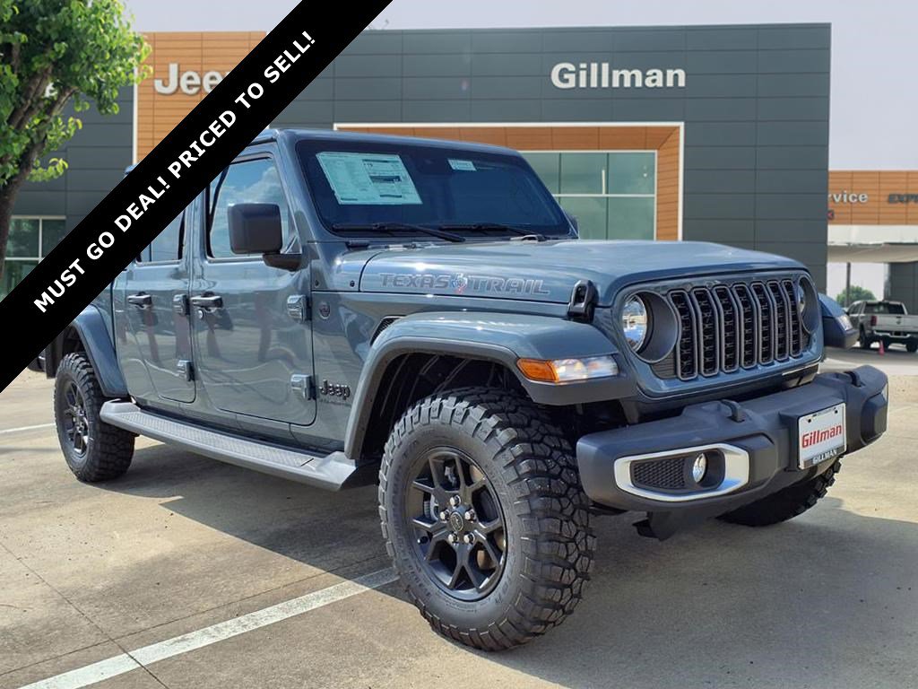 Gillman Chrysler Jeep Dodge Ram is pleased to offer this great-looking 2025 Jeep Gladiator Texas Trail in Anvil Clearcoat with Black interior. Well equipped with Convenience Group (Corning Gorilla Glass, Daytime Running Lamp System, Emergency/Assistance Call, Front Door Locks 2-Door Passive Entry, Heated Front Seats, Heated Steering Wheel, Remote Start System, and Universal Garage Door Opener), Quick Order Package 24J Texas Trail (97 MPH Vehicle Max Speed Calibration, Advanced Brake Assist, Automatic Headlamps, Body Color 3-Piece Hard Top, Body Color Fender Flares (2-Piece), Deep Tint Sunscreen Windows, Freedom Panel Storage Bag, Full Length Floor Console Premium Armrest, Full Speed Forward Collision Warning Plus, Hard Seat Back, Integrated Radar Camera Module (IRCM), Leather Wrapped Park Brake Handle, Leather Wrapped Shift Knob, Power 4-Way Driver Lumbar Adjust, Power 4-Way Passenger Lumbar Adjust, Power Adjust 8-Way Driver Seat, Power Adjust 8-Way Front Passenger Seat, Power Heated Mirrors, Premium Door Trim Panel, Premium McKinley Trimmed Seats, Premium Wrapped Steering Wheel, Rear Armrest w/Cupholder Seat, Rear Sliding Window, Rear Window Defroster, Security Alarm, Sun Visors w/Illuminated Vanity Mirrors, Texas Trail, Texas Trail Tailgate & Hood Decals, Wheels: 17" x 7.5" Painted Black, and Willys Suspension), 110 MPH Vehicle Max Speed Calibration, 12.3" Touchscreen Display, 3.73 Rear Axle Ratio, 4-Wheel Disc Brakes, 4G LTE Wi-Fi Hot Spot, 8 Speakers, ABS brakes, Air Conditioning, Alexa Built-In, AM/FM radio: SiriusXM, Apple CarPlay, Apple CarPlay/Android Auto, Brake assist, Cloth Low-Back Bucket Seats, Compass, Connectivity - US/Canada, Delay-off headlights, Driver door bin, Driver vanity mirror, Dual front impact airbags, Dual front side impact airbags, Electronic Stability Control, Front anti-roll bar, Front Bucket Seats, Front Center Armrest w/Storage, Front fog lights, Front License Plate Bracket, Front reading lights, Google Android Auto, Illuminated entry, Integrated roll-over protection, Low tire pressure warning, MOPAR All-Weather Slush Mats, MOPAR Spray In Bedliner, Normal Duty Suspension, Occupant sensing airbag, Outside temperature display, Overhead airbag, Panic alarm, ParkView Rear Back-Up Camera, Passenger door bin, Passenger vanity mirror, Power steering, Power windows, Radio data system, Radio: Uconnect 5 w/12.3" Display, Rear anti-roll bar, Rear reading lights, Remote keyless entry, Side Steps, Speed control, Split folding rear seat, Steering wheel mounted audio controls, Tachometer, Telescoping steering wheel, Tilt steering wheel, Traction control, Trip computer, USB Host Flip, Variably intermittent wipers, Voltmeter, and Wheels: 17" x 7.5" Black Steel Styled.