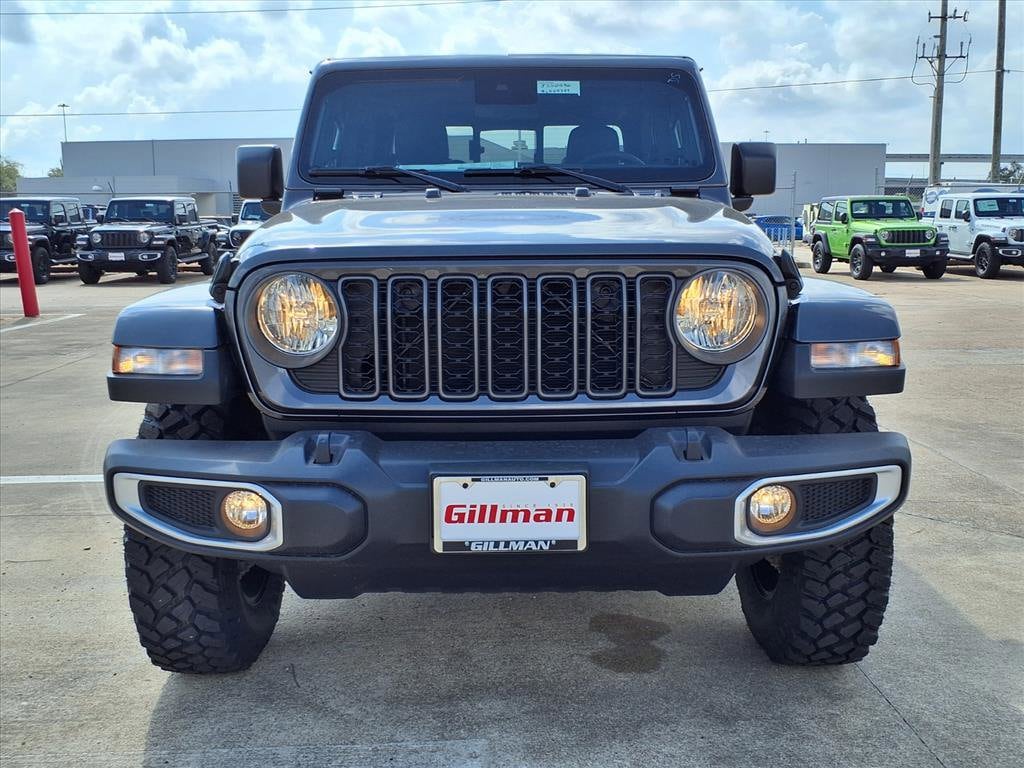 Gillman Chrysler Jeep Dodge Ram is pumped up to offer this handsome 2025 Jeep Gladiator Texas Trails in Granite Crystal Metallic Clearcoat with Black interior. Well equipped with Convenience Group (Corning Gorilla Glass, Daytime Running Lamp System, Emergency/Assistance Call, Front Door Locks 2-Door Passive Entry, Heated Front Seats, Heated Steering Wheel, Remote Start System, and Universal Garage Door Opener), Quick Order Package 24Q High Tide (97 MPH Vehicle Max Speed Calibration, Advanced Brake Assist, Automatic Headlamps, Body Color 3-Piece Hard Top, Body Color Fender Flares (2-Piece), Deep Tint Sunscreen Windows, Freedom Panel Storage Bag, Full Length Floor Console Premium Armrest, Full Speed Forward Collision Warning Plus, Hard Seat Back, High Tide, High Tide Tailgate & Hood Decals, Integrated Radar Camera Module (IRCM), Leather Wrapped Park Brake Handle, Leather Wrapped Shift Knob, Power 4-Way Driver Lumbar Adjust, Power 4-Way Passenger Lumbar Adjust, Power Adjust 8-Way Driver Seat, Power Adjust 8-Way Front Passenger Seat, Power Heated Mirrors, Premium Door Trim Panel, Premium McKinley Trimmed Seats, Premium Wrapped Steering Wheel, Rear Armrest w/Cupholder Seat, Rear Sliding Window, Rear Window Defroster, Security Alarm, Sun Visors w/Illuminated Vanity Mirrors, Wheels: 17" x 7.5" Painted Black, and Willys Suspension), 110 MPH Vehicle Max Speed Calibration, 12.3" Touchscreen Display, 3.73 Rear Axle Ratio, 4-Wheel Disc Brakes, 4G LTE Wi-Fi Hot Spot, 8 Speakers, ABS brakes, Air Conditioning, Alexa Built-In, AM/FM radio: SiriusXM, Apple CarPlay, Apple CarPlay/Android Auto, Brake assist, Cloth Low-Back Bucket Seats, Compass, Connectivity - US/Canada, Delay-off headlights, Driver door bin, Driver vanity mirror, Dual front impact airbags, Dual front side impact airbags, Electronic Stability Control, Front anti-roll bar, Front Bucket Seats, Front Center Armrest w/Storage, Front fog lights, Front License Plate Bracket, Front reading lights, Google Android Auto, Illuminated entry, Integrated roll-over protection, Low tire pressure warning, Normal Duty Suspension, Occupant sensing airbag, Outside temperature display, Overhead airbag, Panic alarm, ParkView Rear Back-Up Camera, Passenger door bin, Passenger vanity mirror, Power steering, Power windows, Radio data system, Radio: Uconnect 5 w/12.3" Display, Rear anti-roll bar, Rear reading lights, Remote keyless entry, Side Steps, Speed control, Split folding rear seat, Steering wheel mounted audio controls, Tachometer, Telescoping steering wheel, Tilt steering wheel, Traction control, Trip computer, USB Host Flip, Variably intermittent wipers, Voltmeter, and Wheels: 17" x 7.5" Black Steel Styled.