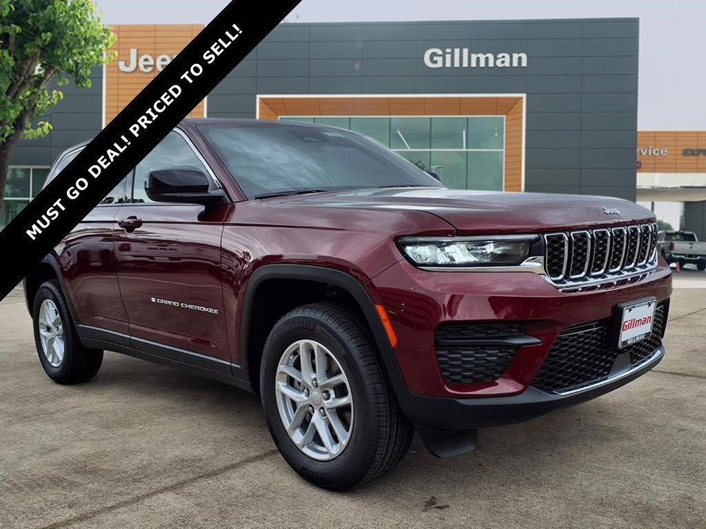 Gillman Chrysler Jeep Dodge Ram is excited to offer this good-looking 2025 Jeep Grand Cherokee Laredo X in Velvet Red Pearlcoat with Black interior. Well equipped with Quick Order Package 23D Laredo X (Laredo X, Power Sunroof, and Wheels: 18" x 8" Fully Painted Aluminum), 4-Wheel Disc Brakes, 6 Speakers, ABS brakes, Air Conditioning, Alloy wheels, AM/FM radio: SiriusXM, Anti-whiplash front head restraints, Automatic temperature control, Brake assist, Bumpers: body-color, Cloth Seats, Compass, Delay-off headlights, Driver door bin, Driver vanity mirror, Dual front impact airbags, Dual front side impact airbags, Electronic Stability Control, Emergency communication system, Four wheel independent suspension, Front anti-roll bar, Front Bucket Seats, Front Center Armrest w/Storage, Front dual zone A/C, Front License Plate Bracket, Front reading lights, Fully automatic headlights, Heated door mirrors, Illuminated entry, Knee airbag, Low tire pressure warning, Model Year Tracking, Normal Duty Suspension, Occupant sensing airbag, Outside temperature display, Overhead airbag, Overhead console, Panic alarm, ParkView Rear Back-Up Camera, Passenger door bin, Passenger vanity mirror, Power door mirrors, Power driver seat, Power steering, Power windows, Radio data system, Rear anti-roll bar, Rear reading lights, Rear window defroster, Rear window wiper, Remote keyless entry, Security system, Speed control, Speed-Sensitive Wipers, Split folding rear seat, Spoiler, Steering wheel mounted audio controls, Tachometer, Telescoping steering wheel, Tilt steering wheel, Traction control, Trip computer, Variably intermittent wipers, Voltmeter, and Wheels: 17" x 6.5" Fully Painted Aluminum.