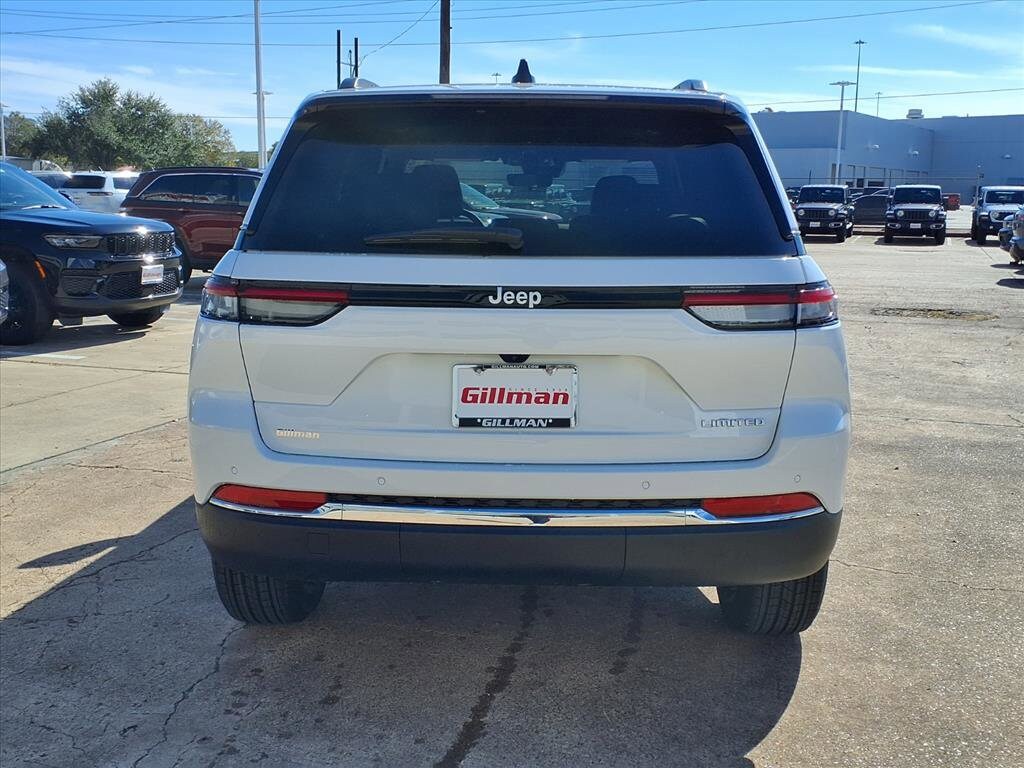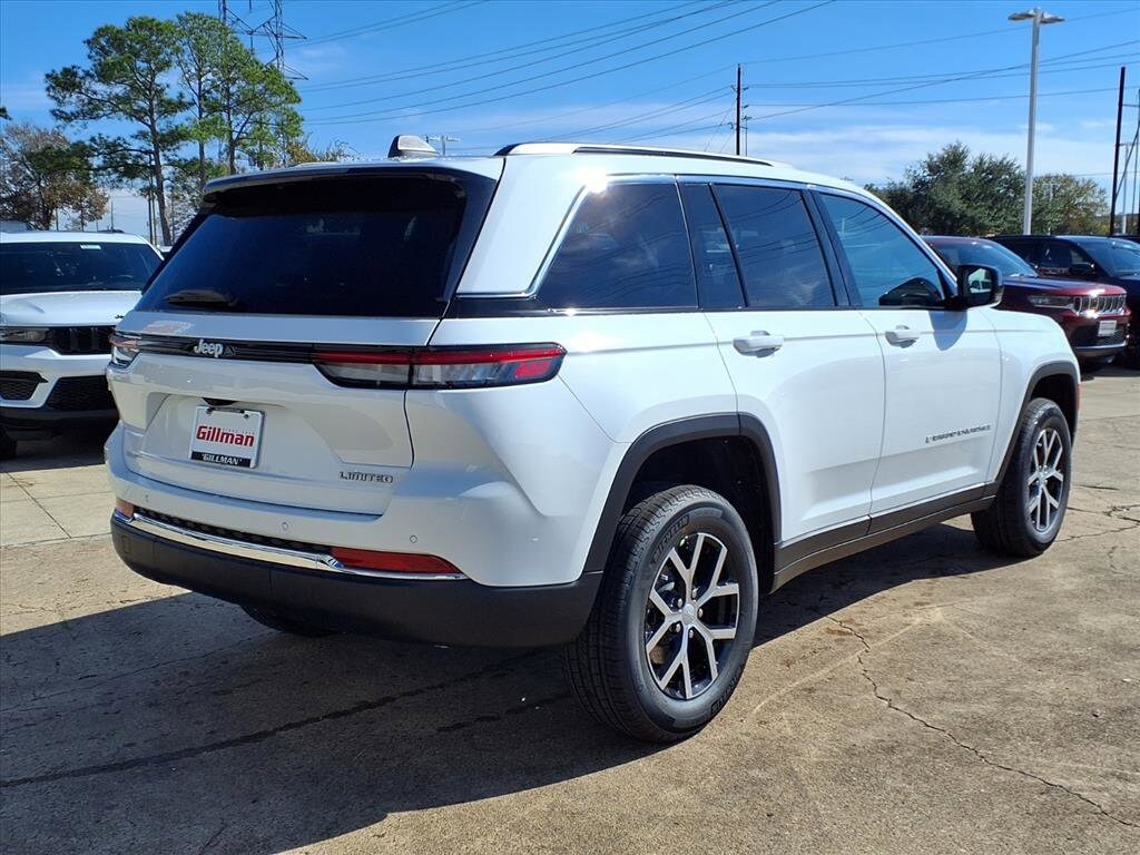 Gillman Chrysler Jeep Dodge Ram is honored to offer this great-looking 2025 Jeep Grand Cherokee Limited in Bright White Clearcoat with Global Black interior. Well equipped with Quick Order Package 22E, 4-Wheel Disc Brakes, 6 Speakers, ABS brakes, Active Noise Control System, Air Conditioning, Alloy wheels, AM/FM radio: SiriusXM with 360L, Anti-whiplash front head restraints, Audio memory, Auto High-beam Headlights, Automatic temperature control, Brake assist, Bumpers: body-color, Capri Leatherette Seats, Compass, Delay-off headlights, Driver door bin, Driver vanity mirror, Dual front impact airbags, Dual front side impact airbags, Electronic Stability Control, Emergency communication system, Four wheel independent suspension, Front anti-roll bar, Front Bucket Seats, Front Center Armrest w/Storage, Front dual zone A/C, Front fog lights, Front License Plate Bracket, Front reading lights, Fully automatic headlights, Garage door transmitter, Heated door mirrors, Heated front seats, Heated rear seats, Heated steering wheel, Illuminated entry, Knee airbag, Low tire pressure warning, Memory seat, Model Year Tracking, Navigation System, Normal Duty Suspension, Occupant sensing airbag, Outside temperature display, Overhead airbag, Overhead console, Panic alarm, ParkView Rear Back-Up Camera, Passenger door bin, Passenger vanity mirror, Power door mirrors, Power driver seat, Power Liftgate, Power passenger seat, Power steering, Power windows, Radio data system, Radio: Uconnect 5 Nav with 10.1" Display, Rear anti-roll bar, Rear reading lights, Rear window defroster, Rear window wiper, Remote keyless entry, Security system, Speed control, Speed-Sensitive Wipers, Split folding rear seat, Spoiler, Steering wheel mounted audio controls, Tachometer, Telescoping steering wheel, Tilt steering wheel, Traction control, Trip computer, Turn signal indicator mirrors, Variably intermittent wipers, Voltmeter, and Wheels: 18" x 8" Polished/Painted Aluminum.