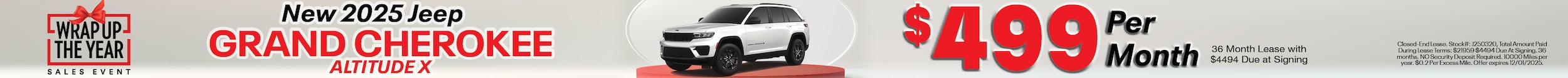 Gillman Chrysler Jeep Dodge Ram is excited to offer this outstanding 2025 Jeep Grand Cherokee L Altitude X in Diamond Black Crystal Pearlcoat with Global Black interior. Well equipped with Quick Order Package 23M Altitude X (115V Auxiliary Power Outlet, 3rd Row Charge-Only USB Ports, Altitude X, Black Headliner, Capri Leatherette/Suede Seats, Delete Laredo Badge, Gloss Black Exterior Accents, Heated Front Seats, Heated Steering Wheel, Power Liftgate, Power Sunroof, Rain Sensitive Windshield Wipers, Remote Start System, Selectable Tire Fill Alert, Wheels: 18" x 8.0" Fully Painted Aluminum 1, and Wireless Charging Pad), 3.45 Rear Axle Ratio, 3rd row seats: split-bench, 4-Wheel Disc Brakes, 6 Speakers, ABS brakes, Air Conditioning, Alloy wheels, AM/FM radio: SiriusXM, Anti-whiplash front head restraints, Automatic temperature control, Brake assist, Bumpers: body-color, Cloth Seats, Compass, Delay-off headlights, Driver door bin, Driver vanity mirror, Dual front impact airbags, Dual front side impact airbags, Electronic Stability Control, Emergency communication system, Four wheel independent suspension, Front anti-roll bar, Front Bucket Seats, Front Center Armrest w/Storage, Front dual zone A/C, Front License Plate Bracket, Front reading lights, Fully automatic headlights, Heated door mirrors, Illuminated entry, Knee airbag, Low tire pressure warning, Manual Fold Seatbacks, Model Year Tracking, Normal Duty Suspension, Occupant sensing airbag, Outside temperature display, Overhead airbag, Overhead console, Panic alarm, ParkView Rear Back-Up Camera, Passenger door bin, Passenger vanity mirror, Power door mirrors, Power driver seat, Power steering, Power windows, Radio data system, Radio: Uconnect 5 w/8.4" Display, Rear air conditioning, Rear anti-roll bar, Rear reading lights, Rear window defroster, Rear window wiper, Reclining 3rd row seat, Remote keyless entry, Security system, Speed control, Speed-Sensitive Wipers, Split folding rear seat, Spoiler, Steering wheel mounted audio controls, Tachometer, Telescoping steering wheel, Tilt steering wheel, Traction control, Trip computer, Variably intermittent wipers, Voltmeter, Wheels: 18" x 8.0" Fully Painted Aluminum, and Wheels: 20" x 8.5" Gloss Black Painted Aluminum.