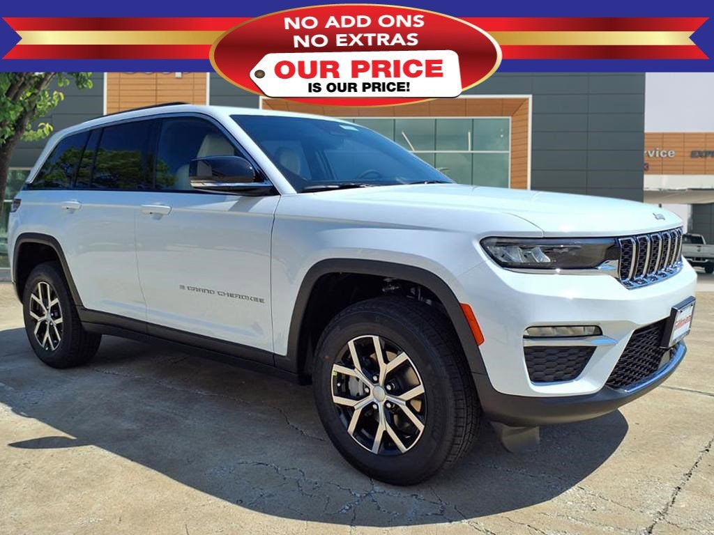Gillman Chrysler Jeep Dodge Ram is pleased to offer this handsome 2025 Jeep Grand Cherokee Limited in Bright White Clearcoat with Wicker Beige/Black interior. Well equipped with Quick Order Package 23E (DISC), 4-Wheel Disc Brakes, 6 Speakers, ABS brakes, Active Noise Control System, Air Conditioning, Alloy wheels, AM/FM radio: SiriusXM with 360L, Anti-whiplash front head restraints, Audio memory, Auto High-beam Headlights, Automatic temperature control, Brake assist, Bumpers: body-color, Capri Leatherette Seats, Compass, Delay-off headlights, Driver door bin, Driver vanity mirror, Dual front impact airbags, Dual front side impact airbags, Dual-Pane Panoramic Sunroof, Electronic Stability Control, Emergency communication system, Four wheel independent suspension, Front anti-roll bar, Front Bucket Seats, Front Center Armrest w/Storage, Front dual zone A/C, Front fog lights, Front License Plate Bracket, Front reading lights, Fully automatic headlights, Garage door transmitter, Heated door mirrors, Heated front seats, Heated rear seats, Heated steering wheel, Illuminated entry, Knee airbag, Low tire pressure warning, Memory seat, Model Year Tracking, Navigation System, Normal Duty Suspension, Occupant sensing airbag, Outside temperature display, Overhead airbag, Overhead console, Panic alarm, ParkView Rear Back-Up Camera, Passenger door bin, Passenger vanity mirror, Power door mirrors, Power driver seat, Power Liftgate, Power passenger seat, Power steering, Power windows, Radio data system, Radio: Uconnect 5 Nav w/10.1" Display, Rear anti-roll bar, Rear reading lights, Rear window defroster, Rear window wiper, Remote keyless entry, Security system, Speed control, Speed-Sensitive Wipers, Split folding rear seat, Spoiler, Steering wheel mounted audio controls, Tachometer, Telescoping steering wheel, Tilt steering wheel, Traction control, Trip computer, Turn signal indicator mirrors, Variably intermittent wipers, Voltmeter, and Wheels: 18" x 8" Polished/Painted Aluminum.