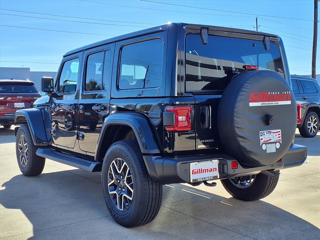 Gillman Chrysler Jeep Dodge Ram is pumped up to offer this charming 2026 Jeep Wrangler Sahara in Black Clearcoat with Black interior. Well equipped with Quick Order Package 24G, Sahara Popular Equipment Group (12.3" Touchscreen Display, 4G LTE Wi-Fi Hot Spot, Alpine Premium Audio System, Apple CarPlay, Auto High Beam Headlamp Control, Auto-Dimming Rear-View Mirror, Blind Spot & Cross Path Detection, Connected Travel & Traffic Services, Connectivity - US/Canada, For More Info, Call 800-643-2112, Google Android Auto, GPS Navigation, Hard Seat Back, HD Radio, Integrated Center Stack Radio, Integrated Off-Road Camera, Integrated Voice Command w/Bluetooth, Leather Wrapped Park Brake Handle, Leather Wrapped Shift Knob, McKinley Trimmed Seats, ParkSense Rear Park Assist System, Power 4-Way Driver Lumbar Adjust, Power 4-Way Passenger Lumbar Adjust, Power Adjust 8-Way Driver Seat, Power Adjust 8-Way Front Passenger Seat, Radio: Uconnect 5 Nav w/12.3" Display, Side Steps, SiriusXM Radio Service, SiriusXM w/360L, and Universal Garage Door Opener), 3.45 Overall Top Gear Ratio, 4-Wheel Disc Brakes, 8 Speakers, ABS brakes, Air Conditioning, Alloy wheels, AM/FM radio: SiriusXM with 360L, Apple CarPlay/Android Auto, Automatic temperature control, Aux Battery, Body Color 3-Piece Hard Top, Brake assist, Cloth Low-Back Bucket Seats, Compass, Delay-off headlights, Driver door bin, Driver vanity mirror, Dual front impact airbags, Dual front side impact airbags, Electronic Stability Control, Emergency communication system: Jeep Connect, Freedom Panel Storage Bag, Front anti-roll bar, Front Bucket Seats, Front Center Armrest w/Storage, Front dual zone A/C, Front fog lights, Front License Plate Bracket, Front reading lights, Fully automatic headlights, Heated door mirrors, Heated front seats, Heated steering wheel, Heavy Duty Suspension w/Gas Shocks, Illuminated entry, Integrated roll-over protection, Low tire pressure warning, MOPAR All-Weather Floor Mats, Non-Lock Fuel Cap w/o Discriminator, Occupant sensing airbag, Outside temperature display, Overhead airbag, Panic alarm, ParkView Rear Back-Up Camera, Passenger door bin, Passenger vanity mirror, Power door mirrors, Power steering, Power windows, Radio data system, Radio: Uconnect 5 w/12.3" Display, Rear anti-roll bar, Rear reading lights, Rear Window Defroster, Rear Window Wiper/Washer, Remote keyless entry, Security system, Speed control, Split folding rear seat, Steering wheel mounted audio controls, Stop-Start Dual Battery System, Tachometer, Telescoping steering wheel, Tilt steering wheel, Traction control, Trip computer, Variably intermittent wipers, Voltmeter, and Wheels: 18" x 7.5" Machine/Painted Gray.