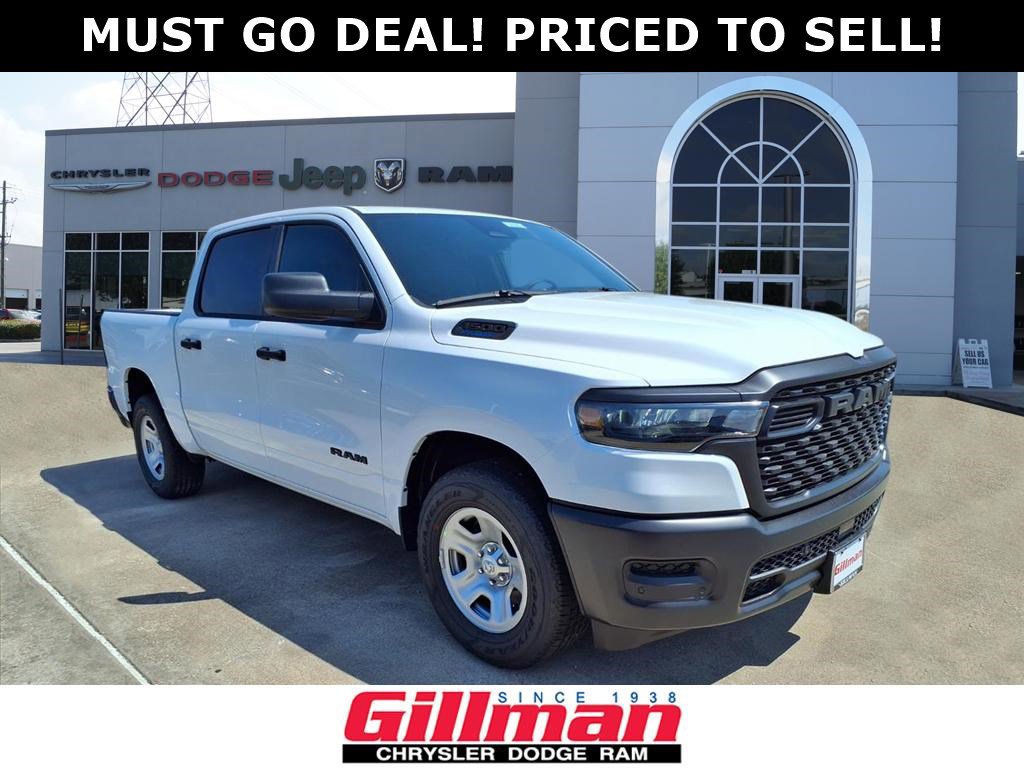 Gillman Chrysler Jeep Dodge Ram is very proud to offer this wonderful 2025 Ram 1500 Tradesman in Bright White Clearcoat with Black interior. Well equipped with Quick Order Package 23A Tradesman, Tradesman Level 1 Equipment Group (2nd Row In Floor Storage Bins, 3 Rear Seat Head Restraints, 4 Way Front Headrests, 40/20/40 Split Bench Seat, Cloth Bench Seat, Front & Rear Floor Mats, Front Center Seat Cushion Storage, Front Seat Back Map Pockets, Manual Adjust 4-Way Driver Seat, Manual Adjust 4-Way Front Passenger Seat, Rear 60/40 Folding Seat, Rear Power Sliding Window, Seat Parts Module II, and SiriusXM Satellite Radio), 4-Wheel Disc Brakes, 6 Speakers, ABS brakes, Air Conditioning, AM/FM radio, Apple CarPlay/Android Auto, Auto High-beam Headlights, Black Exterior Mirrors, Brake assist, Compass, Delay-off headlights, Driver door bin, Dual front impact airbags, Dual front side impact airbags, Electronic Stability Control, Exterior Mirrors w/Heating Element, Front anti-roll bar, Front Center Armrest, Front License Plate Bracket, Front reading lights, Front wheel independent suspension, Fully automatic headlights, Heated door mirrors, Heavy Duty Vinyl 40/20/40 Split Bench Seat, Illuminated entry, Low tire pressure warning, Manual Folding Exterior Mirrors, Occupant sensing airbag, Outside temperature display, Overhead airbag, Overhead console, Panic alarm, ParkView Rear Back-Up Camera, Passenger door bin, Passenger vanity mirror, Power door mirrors, Power steering, Power windows, Radio data system, Radio: Uconnect 5 W w/8.4" Display, Rear anti-roll bar, Rear step bumper, Remote keyless entry, Speed control, Tachometer, Telescoping steering wheel, Tilt steering wheel, Traction control, Variably intermittent wipers, Voltmeter, and Wheels: 18" x 7.5" Steel Painted.