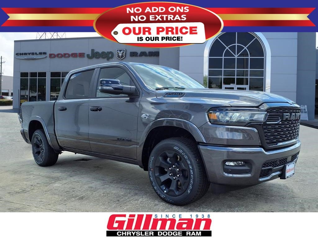Gillman Chrysler Jeep Dodge Ram is pleased to offer this charming 2026 Ram 1500 Big Horn/Lone Star in Granite Crystal Metallic Clearcoat with Black interior. Well equipped with ABS brakes, Active Cruise Control, Alloy wheels, Compass, Electronic Stability Control, Heated door mirrors, Illuminated entry, Low tire pressure warning, Manual Folding Exterior Mirrors, ParkView Rear Back-Up Camera, Remote keyless entry, Traction control, 3 Rear Seat Head Restraints, 3.21 Rear Axle Ratio, 4 Way Front Headrests, 4-Wheel Disc Brakes, 48V Belt Starter Generator, 4G LTE Wi-Fi Hot Spot, 6 Speakers, Air Conditioning, AM/FM radio, Apple CarPlay, Apple CarPlay/Android Auto, Auto High-beam Headlights, Black Exterior Mirrors, Brake assist, Bucket Seats, Bumpers: chrome, Center Console Parts Module, Cloth Bucket Seats, Connectivity - US/Canada, Convex Wide-Angle Exterior Mirror Insert, Delay-off headlights, Driver door bin, Dual front impact airbags, Dual front side impact airbags, Exterior Mirrors w/Heating Element, Front anti-roll bar, Front Bucket Seats, Front Center Armrest w/Storage, Front fog lights, Front reading lights, Front wheel independent suspension, Full Length Floor Console, Fully automatic headlights, Global Telematics Box Module (TBM), Google Android Auto, GPS Antenna Input, Integrated Center Stack Radio, Integrated Voice Command w/Bluetooth, Manual Adjust 4-Way Driver Seat, Manual Adjust 4-Way Front Passenger Seat, Occupant sensing airbag, Outside temperature display, Overhead airbag, Overhead console, Panic alarm, Passenger door bin, Passenger vanity mirror, Power door mirrors, Power steering, Power windows, Radio data system, Radio: Uconnect 5 W w/8.4" Display, RAM Grille Badge - Chrome, Rear anti-roll bar, Rear step bumper, Speed control, Supplier Part Tracking (J-1), Tachometer, Telescoping steering wheel, Tilt steering wheel, Trip computer, USB Host Flip, Variably intermittent wipers, Voltmeter, and Wheels: 18" x 8" Cast-Aluminum Painted.