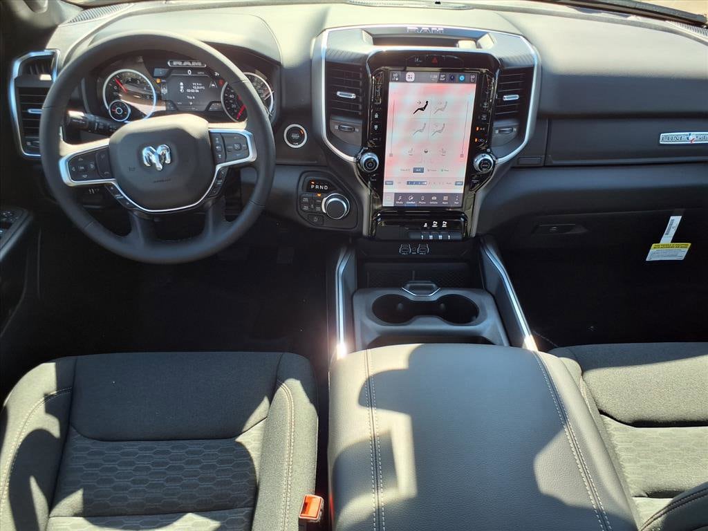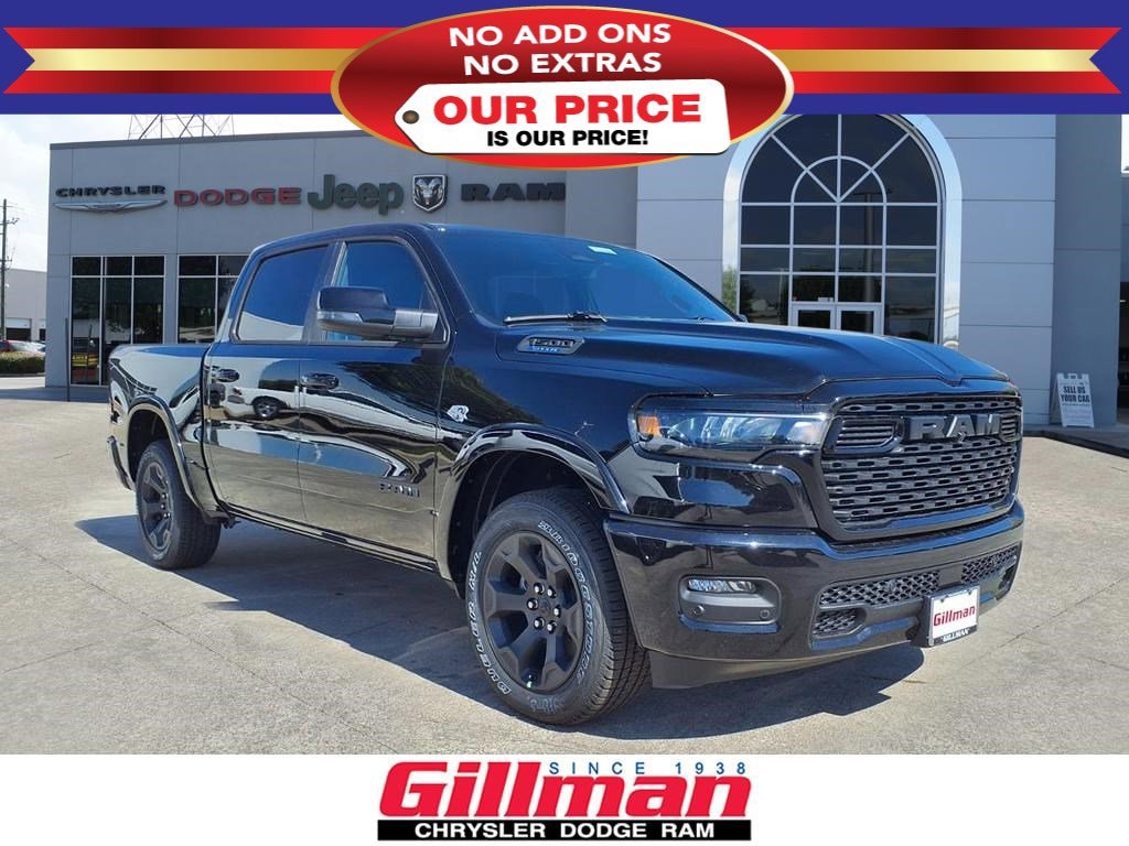 Gillman Chrysler Jeep Dodge Ram is pumped up to offer this superb 2026 Ram 1500 Big Horn/Lone Star in Diamond Black Crystal Pearlcoat with Black interior. Well equipped with Big Horn Level 2 Equipment Group (115V Auxiliary Power Outlet, 115V Auxiliary Rear Power Outlet, 12" Touchscreen Display, 2nd Row In Floor Storage Bins, 3 Rear Seat Head Restraints, 4 Way Front Headrests, 400W Inverter, 4G LTE Wi-Fi Hot Spot, 9 Amplified Speakers w/Subwoofer, Air Conditioning ATC w/Dual Zone Control, Apple CarPlay, Auto Power-Folding Mirrors, Auto-Dimming Exterior Driver Mirror, Auto-Dimming Rear-View Mirror, Black Exterior Mirrors, Black Premium Power Mirrors, Body Color Fender Flares, Bucket Seats, Center Console Parts Module, Cluster 7.0" TFT Color Display, Configurable Drive Mode, Connected Travel & Traffic Services, Connectivity - US/Canada, Convex Wide-Angle Exterior Mirror Insert, Deluxe Cloth Bucket Seats, Disassociated Touchscreen Display, Exterior Mirrors Courtesy Lamps, Exterior Mirrors w/Heating Element, Exterior Mirrors w/Supplemental Signals, Front Seat Back Map Pockets, Full Length Floor Console, Global Telematics Box Module (TBM), Glove Box Lamp, Google Android Auto, GPS Antenna Input, GPS Navigation, HD Radio, Heated Front Seats, Heated Steering Wheel, Integrated Center Stack Radio, Integrated Voice Command w/Bluetooth, Leather Wrapped Steering Wheel, LED Dome Lamp w/On/Off Switch, LED Footwell Lighting, Manual Adjust 4-Way Front Passenger Seat, Media Hub w/2 Charge Only USBs, Overhead LED Lamps, Power 2-Way Driver Lumbar Adjust, Power Adjust 8-Way Driver Seat, Power Adjustable Pedals, Premium Overhead Console, Radio: Uconnect 5 Nav w/12.0" Display, Rear 60/40 Folding Seat, Rear Center Armrest, Rear Power Sliding Window, Rear Window Defroster, Remote Tailgate Release, Security Alarm, SiriusXM Radio Service, SiriusXM w/360L, Steering Wheel Mounted Audio Controls, Sun Visors w/Illuminated Vanity Mirrors, Universal Garage Door Opener, USB Host Flip, and Wheels: 20" x 9" Aluminum Chrome Clad (WRK)), Night Edition (Accent Color Door Handles, Accent Color Premium Power Mirrors, Accent Color Tailgate Handle, Anti-Spin Differential Rear Axle, Black Exterior Truck Badging, Black Headlamp Bezels, Black Interior Accents, Black Painted Exterior Mirrors Caps, Black Tail Lamp Bezels, Body Color Front Bumper, Body Color Rear Bumper w/Step Pads, Dual Exhaust w/Black Tips, Grille Black Surround Black Mesh, RAM Grille Badge - Black, and Wheels: 20" x 9.0" Aluminum Painted Clad), Quick Order Package 27R Lone Star (Regional) (Lone Star Badge), 33 Gallon Fuel Tank, 4-Wheel Disc Brakes, 48V Belt Starter Generator, 6 Speakers, ABS brakes, Air Conditioning, Alloy wheels, AM/FM radio, Apple CarPlay/Android Auto, Auto High-beam Headlights, Brake assist, Bumpers: chrome, Cloth Bucket Seats, Compass, Delay-off headlights, Driver door bin, Dual front impact airbags, Dual front side impact airbags, Electronic Stability Control, Front anti-roll bar, Front Bucket Seats, Front Center Armrest w/Storage, Front fog lights, Front License Plate Bracket, Front reading lights, Front wheel independent suspension, Fully automatic headlights, Heated door mirrors, Illuminated entry, Low tire pressure warning, Manual Adjust 4-Way Driver Seat, Manual Folding Exterior Mirrors, MyFlexCare Service Plan, Occupant sensing airbag, Outside temperature display, Overhead airbag, Overhead console, Panic alarm, ParkView Rear Back-Up Camera, Passenger door bin, Passenger vanity mirror, Power door mirrors, Power steering, Power windows, Radio data system, Radio: Uconnect 5 W w/8.4" Display, RAM Grille Badge - Chrome, Rear anti-roll bar, Rear step bumper, Rear Wheelhouse Liners, Remote keyless entry, Speed control, Supplier Part Tracking (J-1), Tachometer, Telescoping steering wheel, Tilt steering wheel, Traction control, Trip computer, Variably intermittent wipers, Voltmeter, and Wheels: 18" x 8" Cast-Aluminum Painted.