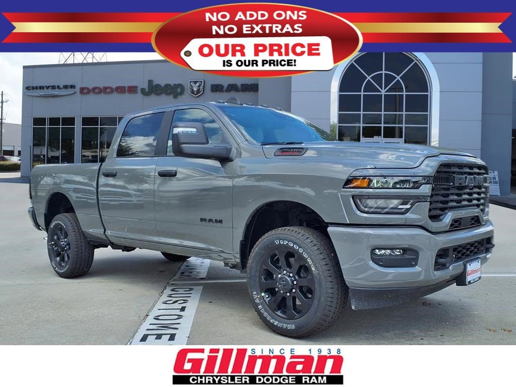 Gillman Chrysler Jeep Dodge Ram is proud to offer this handsome 2026 Ram 2500 Big Horn in Ceramic Gray Clearcoat with Black interior. Well equipped with Big Horn Level 1 Plus Equipment Group (12" Touchscreen Display, 2 Way Rear Headrest Seat, 2nd Row In Floor Storage Bins, 4 Way Front Headrests, 40/20/40 Split Bench Seat, 4G LTE Wi-Fi Hot Spot, 9 Alpine Speakers w/Subwoofer, Air Conditioning ATC w/Dual Zone Control, Alexa Built-In, Anti-Spin Differential Rear Axle, Apple CarPlay, Auto Power-Folding Mirrors, Auto-Dimming Rear-View Mirror, Black Exterior Mirrors, Connected Travel & Traffic Services, Connectivity - US/Canada, Disassociated Touchscreen Display, Dual Glove Boxes, Emergency Vehicle Alert System (EVAS), Exterior Mirrors Courtesy Lamps, Exterior Mirrors w/Heating Element, Exterior Mirrors w/Supplemental Signals, Foam Bottle Insert (Door Trim Panel), Folding Flat Load Floor Storage, Footwell Courtesy Lamp, For Details, Visit DriveUconnect.com, For More Info, Call 800-643-2112, Forward & Reverse Utility Lights, Front Armrest w/Cupholders, Front Center Seat Cushion Storage, Front Seat Back Map Pockets, Global Telematics Box Module (TBM), Glove Box Lamp, Google Android Auto, GPS Antenna Input, GPS Navigation, HD Radio, Integrated Voice Command w/Bluetooth, LED Bed Lighting, Locking Lower Glove Box, Luxury Steering Wheel, Manual Adjust 4-Way Front Passenger Seat, Mirror Running Lights, MOPAR Deployable Bed Step, MOPAR Spray In Bedliner, Off-Road Info Pages, Power 2-Way Driver Lumbar Adjust, Power Adjust 8-Way Driver Seat, Power Adjust Mirrors, Power Heated Folding Telescopic Mirrors, Power Telescoping Mirrors, Power-Adjustable Convex Aux Mirrors, Premium Cloth 40/20/40 Bench Seat, Radio: Uconnect 5 Nav w/12.0" Display, Rear 60/40 Folding Seat, Rear Dome w/On/Off Switch Lamp, Remote Start System, Remote USB Port - Charge Only, Selectable Tire Fill Alert, SiriusXM Radio Service, SiriusXM w/360L, Steering Wheel Mounted Audio Controls, Storage Tray, and Trailer Tow Pages), Night Edition (Black Exterior Truck Badging, Black Interior Accents, Black Wheel Center Hub, Body Color Grille-Surround, Gloss Black Nostrils/Mic Black Grille, Painted Front Bumper, Painted Rear Bumper, and Wheels: 20" x 8.0" Black Painted Aluminum), Quick Order Package 2UY Lone Star (Regional) (Lone Star Badge), 4-Wheel Disc Brakes, 5th Wheel/Gooseneck Towing Prep Group, 6 Speakers, ABS brakes, Air Conditioning, Alloy wheels, AM/FM radio: SiriusXM, Apple CarPlay/Android Auto, Brake assist, Bumpers: chrome, Center Hub, Clearance Lamps, Cloth 40/20/40 Bench Seat, Compass, Delay-off headlights, Driver door bin, Dual front impact airbags, Dual front side impact airbags, Electronic Stability Control, Front anti-roll bar, Front Center Armrest w/Storage, Front fog lights, Front License Plate Bracket, Front reading lights, Fully automatic headlights, Heated door mirrors, Illuminated entry, Low tire pressure warning, Manual Adjust 4-Way Driver Seat, MOPAR Front & Rear Rubber Floor Mats, Occupant sensing airbag, Outside temperature display, Overhead airbag, Overhead console, Panic alarm, ParkView Rear Back-Up Camera, Passenger door bin, Passenger vanity mirror, Power door mirrors, Power steering, Power windows, Radio data system, Radio: Uconnect 5 w/8.4" Display, Rear anti-roll bar, Rear Folding Seat, Rear seat center armrest, Rear step bumper, Rear Wheelhouse Liners, Rear window defroster, Remote keyless entry, Security system, Speed control, Tachometer, Tilt steering wheel, Traction control, Trip computer, Turn signal indicator mirrors, Variably intermittent wipers, Voltmeter, and Wheels: 18" x 8.0" Polished AluminuM.