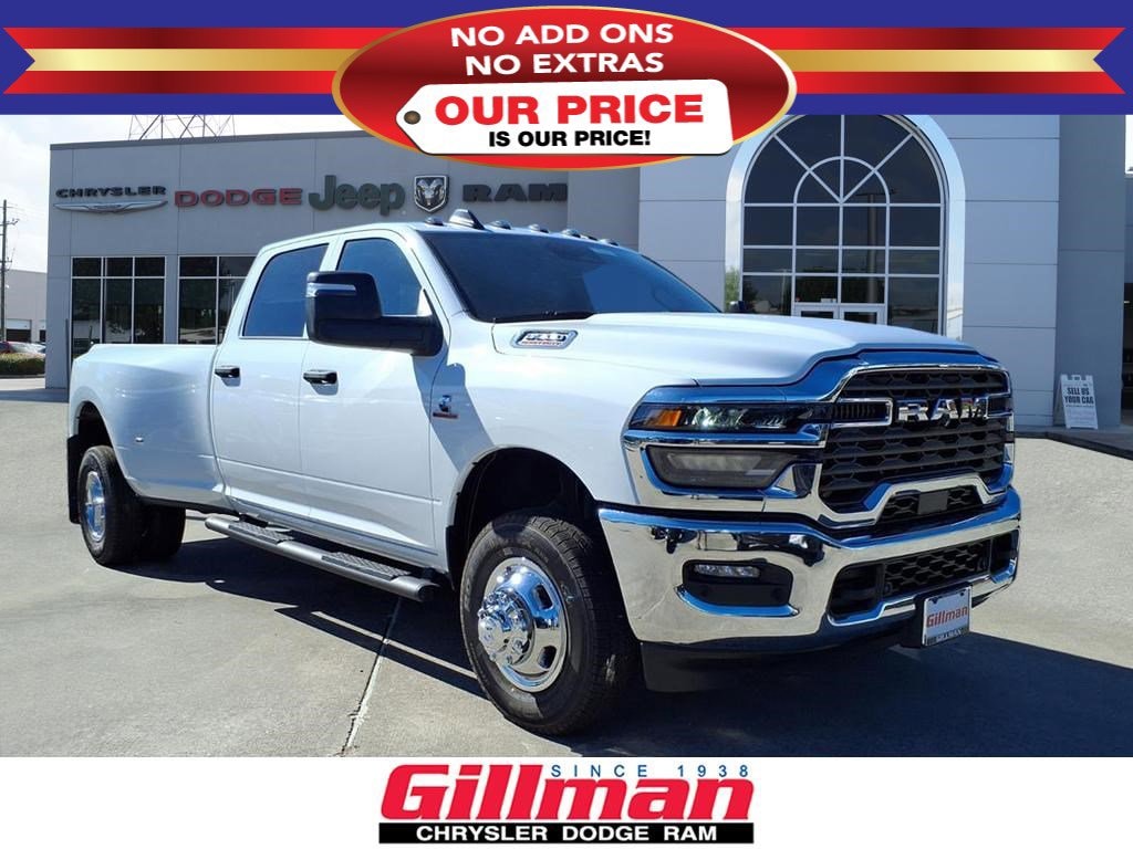 Gillman Chrysler Jeep Dodge Ram is proud to offer this superb 2026 Ram 3500 Tradesman in Bright White Clearcoat with Black interior. Well equipped with Max Tow Package (5th Wheel/Gooseneck Towing Prep Group), Quick Order Package 24A Tradesman, Tradesman Level 2A Equipment Group (115V Auxiliary Front Power Outlet, 12" Touchscreen Display, 2 Way Rear Headrest Seat, 4 Way Front Headrests, 40/20/40 Split Bench Seat, 400W Inverter, 4G LTE Wi-Fi Hot Spot, Air Conditioning ATC w/Dual Zone Control, Alexa Built-In, Apple CarPlay, Auto-Dimming Rear-View Mirror, Black Exterior Mirrors, Bright Front Bumper, Bright Rear Bumper, Bright Wheel Skins, Carpet Floor Covering, Center Hub, Chrome Grille Surround, Cloth 40/20/40 Bench Seat, Connected Travel & Traffic Services, Connectivity - US/Canada, Convenience Group, Disassociated Touchscreen Display, Emergency Vehicle Alert System (EVAS), Exterior 115V AC Outlet, Exterior Mirrors Courtesy Lamps, Exterior Mirrors w/Heating Element, Exterior Mirrors w/Supplemental Signals, For Details Visit DriveUconnect.com, For More Info, Call 800-643-2112, Front & Rear Floor Mats, Front Armrest w/Cupholders, Global Telematics Box Module (TBM), Google Android Auto, GPS Antenna Input, GPS Navigation, HD Radio, Integrated Voice Command w/Bluetooth, Manual Adjust 4-Way Driver Seat, Manual Adjust 4-Way Front Passenger Seat, Manual Folding Exterior Mirrors, Manual Telescoping Mirrors, Matte Black Mesh w/Chrome Grille, Mirror Running Lights, Mopar Black Tubular Side Steps, Off-Road Information Pages, ParkSense Front/Rear Park Assist System, Power Adjust Mirrors, Power Heat Fold Telescopic Mirrors, Power-Adjustable Convex Aux Mirrors, Radio: Uconnect 5 Nav w/12.0" Display, Rear Folding Seat, Rear Power Sliding Window, Remote USB Port - Charge Only, Selectable Tire Fill Alert, SiriusXM Radio Service, SiriusXM w/360L, Storage Tray, Tinted Acoustic Windshield Glass, and Trailer Tow Pages), 4-Wheel Disc Brakes, 50 Gallon Fuel Tank, 6 Speakers, 6000# Front Axle w/Hub Ext, ABS brakes, Air Conditioning, AM/FM radio: SiriusXM, Apple CarPlay/Android Auto, Black Wheel Center Hub, Box & Rear Fender Clearance Lamps, Brake assist, Clearance Lamps, Compass, Delay-off headlights, Driver door bin, Dual front impact airbags, Dual front side impact airbags, Dual Rear Wheels, Electronic Stability Control, Front anti-roll bar, Front Center Armrest w/Storage, Front fog lights, Front License Plate Bracket, Front reading lights, Fully automatic headlights, HD Vinyl 40/20/40 Split Bench Seat, Illuminated entry, Low tire pressure warning, MOPAR Front & Rear Rubber Floor Mats, Nexen Brand Tires, Occupant sensing airbag, Outside temperature display, Overhead airbag, Overhead console, Panic alarm, ParkView Rear Back-Up Camera, Passenger door bin, Passenger vanity mirror, Power steering, Power windows, Radio data system, Radio: Uconnect 5 w/8.4" Display, Rear step bumper, Rear Wheelhouse Liners, Rear window defroster, Remote keyless entry, Speed control, Tachometer, Tilt steering wheel, Traction control, Variably intermittent wipers, Voltmeter, Wheels: 17" x 6.0" Steel Chrome Clad, and Wheels: 18" x 8.0" Black Painted SteeL.