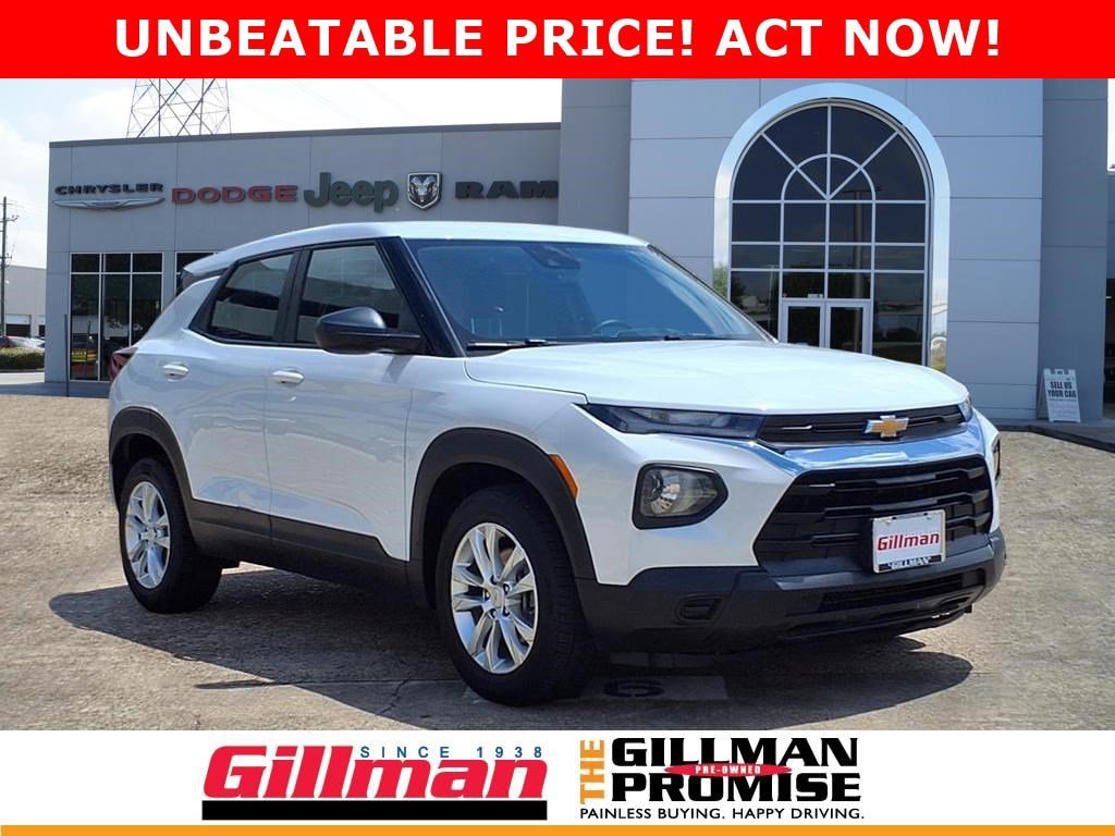 Gillman's Lifetime Engine Warranty lasts as long as you own your vehicle - free with the Gillman Pre-Owned Promise. If the vehicle isn't right for you, return it in purchase condition within 2 days or 200 miles as part of our Happy-Driving Guarantee. Discover the versatility and style of the 2023 Chevrolet Trailblazer LS in classic white. This spacious 4-door SUV offers advanced safety features like Front Automatic Emergency Braking, Lane Keeping Assist, and Pedestrian Detection Pre-collision Warning System. Stay connected on the go with Wireless Apple CarPlay and Android Auto integration, plus a 7-inch Chevrolet Infotainment touchscreen and built-in Wi-Fi hotspot capability. The Trailblazer's efficient ECOTEC 1.2L Turbo engine with CVT ensures a smooth, fuel-saving drive, while conveniences like keyless entry, a rearview camera, and a split-folding rear seat make every journey easier. Enjoy the comfort of cloth upholstery, adjustable seating, and air conditioning, along with peace of mind from OnStar services, a programmable safety key, and multiple airbags. Don't miss this opportunity to own a well-equipped, reliable SUV that's ready for your next adventure. Contact us today to schedule your test drive! All vehicles subject to prior sale. We are not responsible for typographical errors and may change information without notice. Photos may not depict the actual vehicle. Tax, title, and license fees not included. Dealer Discount available to all buyers. Vehicles purchased from Gillman Automotive Group include a Bring It Back Guarantee: return the vehicle in purchase condition within two days or 200 miles. New current-model-year vehicles and qualifying pre-owned vehicles (under 90,000 miles and less than 7 years old) are eligible. Guarantee is non-transferable and has no cash value. Lifetime Warranty available on select pre-owned vehicles. See dealer for details; restrictions may apply.