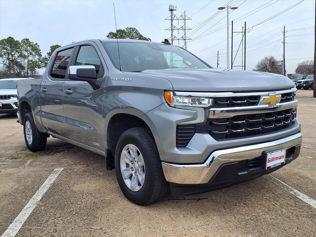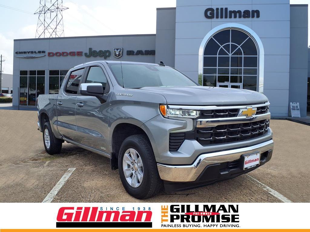 Gillman's Lifetime Engine Warranty lasts as long as you own your vehicle - free with the Gillman Pre-Owned Promise. If the vehicle isn't right for you, return it in purchase condition within 2 days or 200 miles as part of our Happy-Driving Guarantee. Drive in style and power with this 2025 Chevrolet Silverado 1500 4x2 LT Crew Cab in sleek gray. Equipped with the robust EcoTec3 5.3L V8 engine and a smooth 10-speed automatic transmission, this truck is ready for work or weekend adventures. Enjoy advanced tech like the 13.4-inch touchscreen with Google Built-In Infotainment, wireless Apple CarPlay and Android Auto, Amazon Alexa compatibility, and built-in Wi-Fi hotspot. Stay comfortable with dual-zone automatic climate control, heated front seats, a heated steering wheel, and a power-adjustable driver's seat with lumbar support. Safety comes standard with front and pedestrian automatic emergency braking, lane keeping assist, rearview camera, and trailer brake controller. The power open/locking tailgate, LED bed lighting, and trailer hitch add ultimate convenience, while the chrome accents and alloy wheels complete the look. Discover the perfect blend of strength, tech, and comfort in this Silverado 1500 LT-ready for your next journey! All vehicles subject to prior sale. We are not responsible for typographical errors and may change information without notice. Photos may not depict the actual vehicle. Tax, title, and license fees not included. Dealer Discount available to all buyers. Vehicles purchased from Gillman Automotive Group include a Bring It Back Guarantee: return the vehicle in purchase condition within two days or 200 miles. New current-model-year vehicles and qualifying pre-owned vehicles (under 90,000 miles and less than 7 years old) are eligible. Guarantee is non-transferable and has no cash value. Lifetime Warranty available on select pre-owned vehicles. See dealer for details; restrictions may apply.
