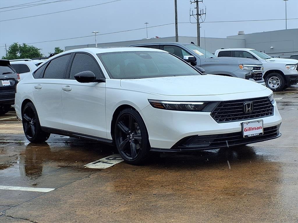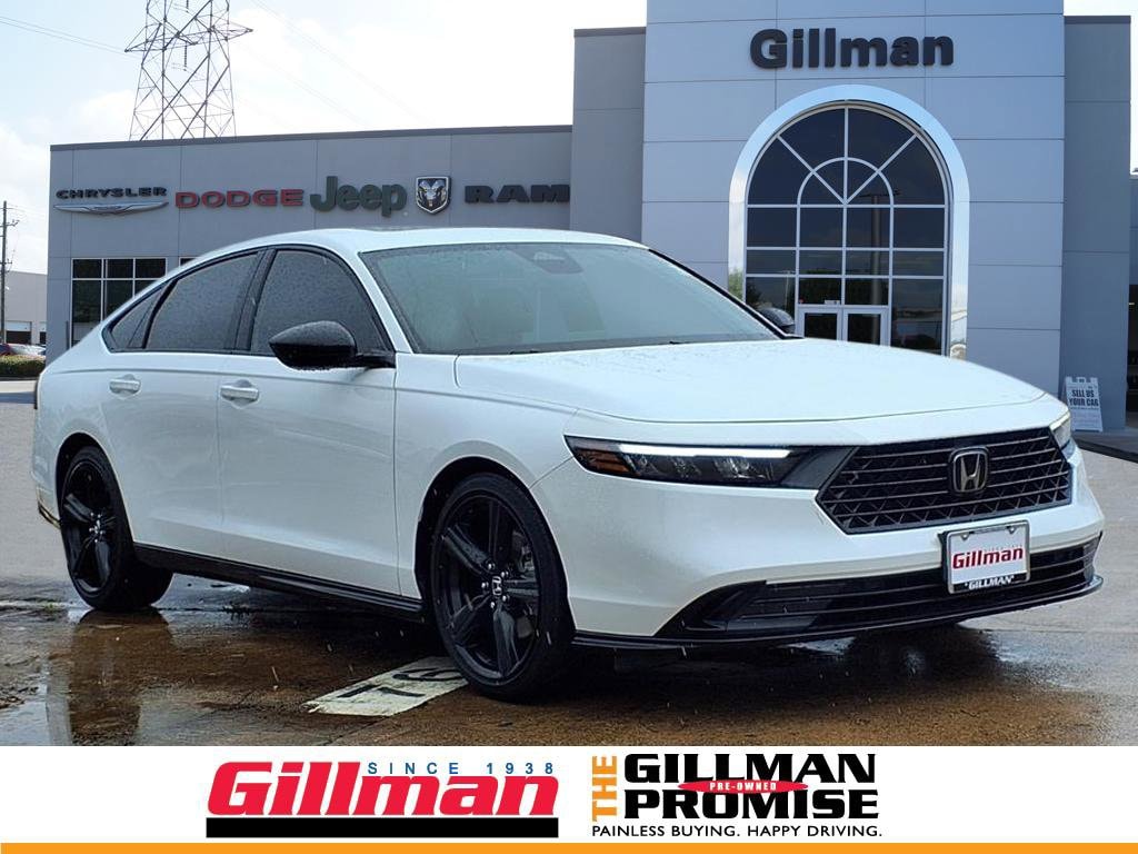 Gillman's Lifetime Engine Warranty lasts as long as you own your vehicle - free with the Gillman Pre-Owned Promise. If the vehicle isn't right for you, return it in purchase condition within 2 days or 200 miles as part of our Happy-Driving Guarantee. Experience efficiency and style with this White 2023 Honda Accord Hybrid Sport-L Sedan. Powered by a responsive 2.0L Hybrid engine delivering 204hp, this Accord blends performance with impressive fuel economy. Enjoy advanced tech features like a 12.3-inch infotainment touchscreen with wireless Apple CarPlay and Android Auto, Amazon Alexa integration, and HondaLink smart device compatibility. Safety comes first with adaptive cruise control, lane keeping assist, front and pedestrian automatic emergency braking, blind spot monitoring, and rear cross traffic alert. Luxurious touches include leather-trimmed upholstery, heated front seats, a power moonroof, and a customizable digital instrument cluster. Convenience features like remote engine start, proximity entry, split-folding rear seats, and multiple USB-C outlets keep every drive comfortable and connected. Don't miss out on this well-equipped hybrid sedan-schedule your test drive today! All vehicles subject to prior sale. We are not responsible for typographical errors and may change information without notice. Photos may not depict the actual vehicle. Tax, title, and license fees not included. Dealer Discount available to all buyers. Vehicles purchased from Gillman Automotive Group include a Bring It Back Guarantee: return the vehicle in purchase condition within two days or 200 miles. New current-model-year vehicles and qualifying pre-owned vehicles (under 90,000 miles and less than 7 years old) are eligible. Guarantee is non-transferable and has no cash value. Lifetime Warranty available on select pre-owned vehicles. See dealer for details; restrictions may apply.