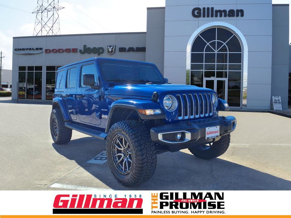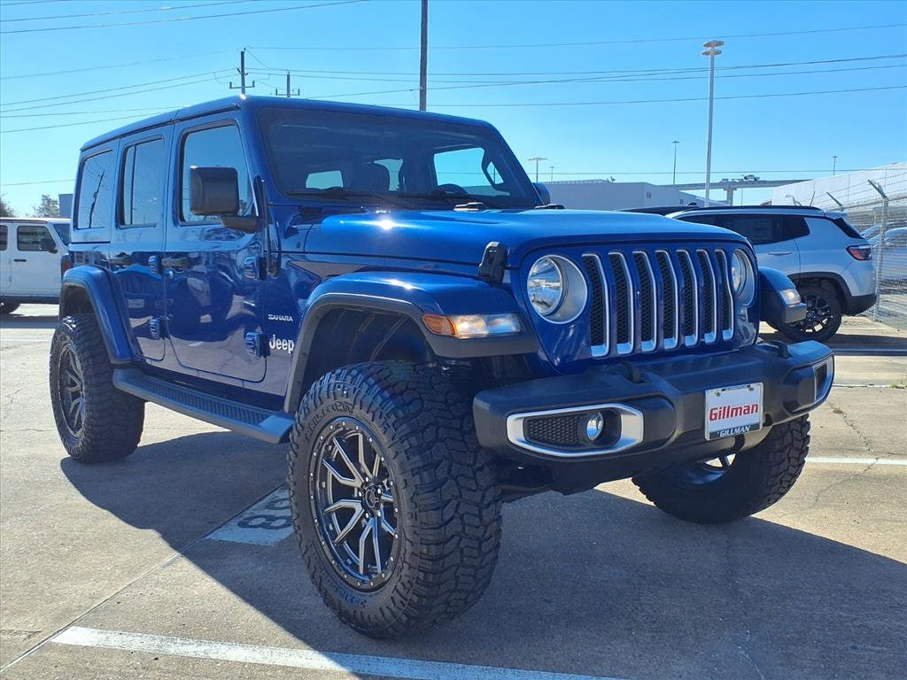 Gillman's Lifetime Engine Warranty lasts as long as you own your vehicle - free with the Gillman Pre-Owned Promise. If the vehicle isn't right for you, return it in purchase condition within 2 days or 200 miles as part of our Happy-Driving Guarantee. Experience adventure and style in this Blue 2018 Jeep Wrangler Unlimited Sahara 4x4! Enjoy the freedom of the body color 3-piece hard top, enhanced off-road performance with Bridgestone All Terrain 255/70R18 tires, and the convenience of a remote start system. Equipped with the Trailer Tow and HD Electrical Group, you're ready for weekend getaways or hauling gear. The Uconnect infotainment system features a 7-inch touchscreen with Apple CarPlay and Android Auto, keeping you connected wherever you roam. Inside, you'll find customizable digital displays, automatic climate control, and a leather-wrapped steering wheel for comfort. Additional highlights include heated side mirrors, rearview camera, running boards, and premium Alpine audio. Powered by a robust 3.6L V6 engine paired with an 8-speed automatic transmission and legendary Jeep 4x4 capability, this Wrangler is ready for any journey. Visit us for a test drive and make this iconic SUV yours today! All vehicles subject to prior sale. We are not responsible for typographical errors and may change information without notice. Photos may not depict the actual vehicle. Tax, title, and license fees not included. Dealer Discount available to all buyers. Vehicles purchased from Gillman Automotive Group include a Bring It Back Guarantee: return the vehicle in purchase condition within two days or 200 miles. New current-model-year vehicles and qualifying pre-owned vehicles (under 90,000 miles and less than 7 years old) are eligible. Guarantee is non-transferable and has no cash value. Lifetime Warranty available on select pre-owned vehicles. See dealer for details; restrictions may apply.