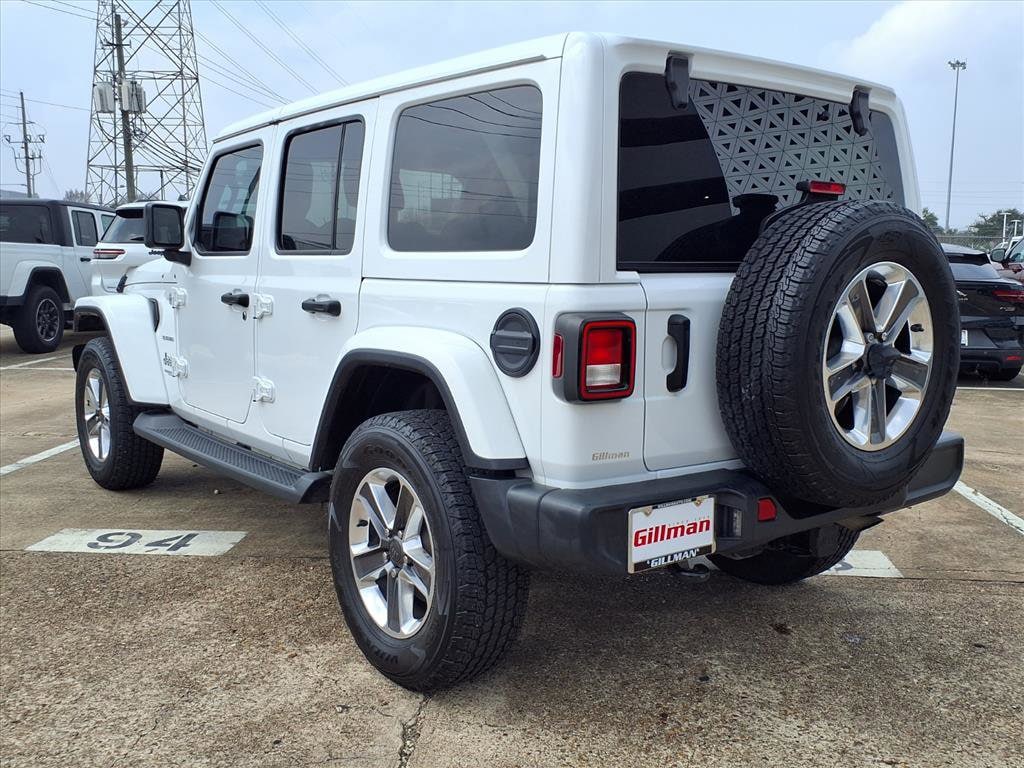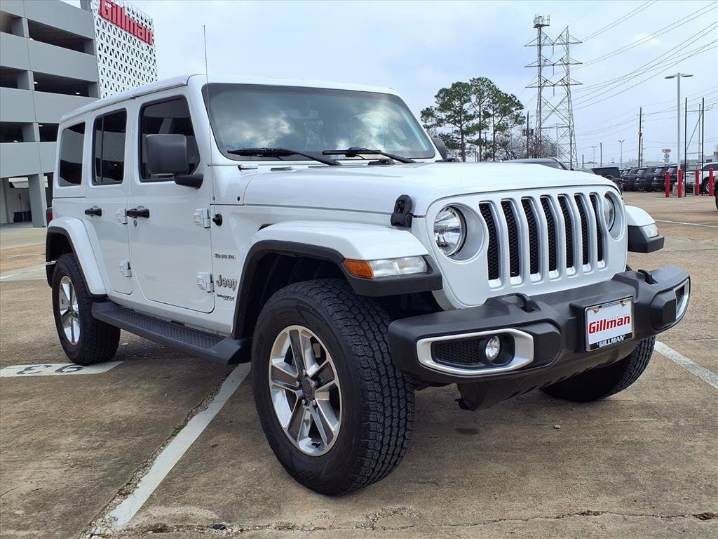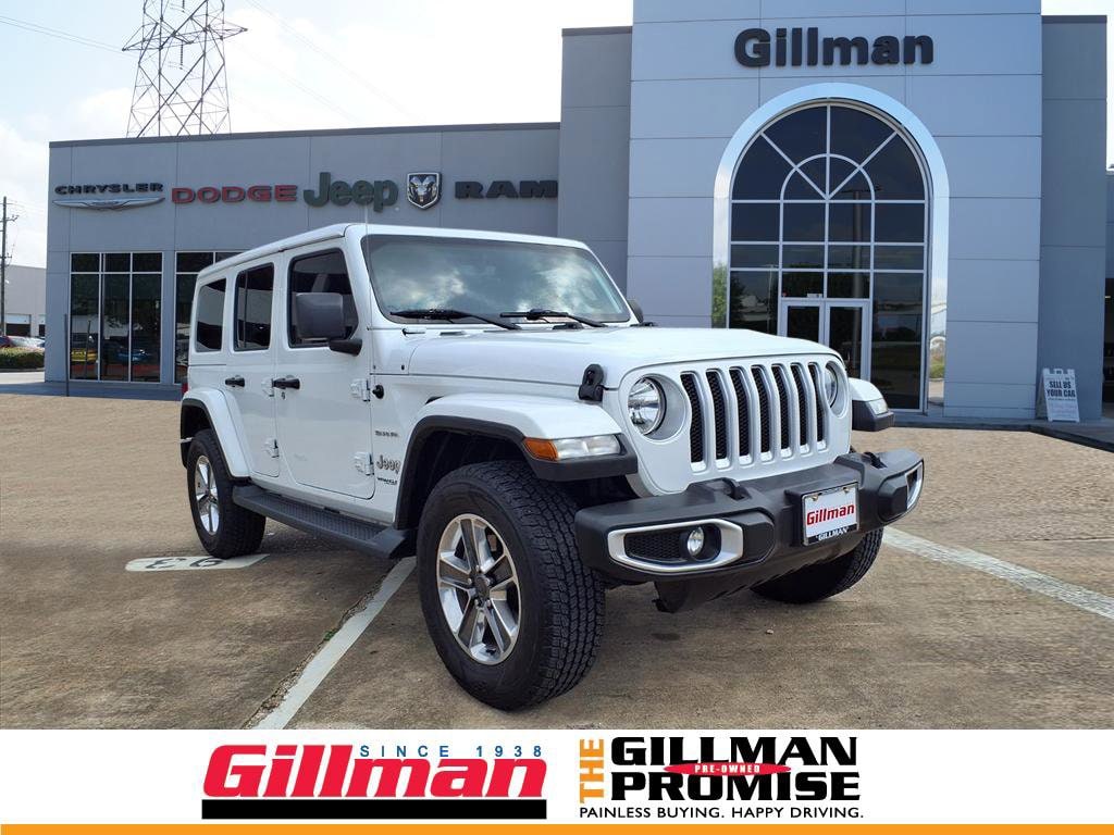 Gillman's Lifetime Engine Warranty lasts as long as you own your vehicle - free with the Gillman Pre-Owned Promise. If the vehicle isn't right for you, return it in purchase condition within 2 days or 200 miles as part of our Happy-Driving Guarantee. Adventure awaits in this stunning White 2021 Jeep Wrangler Unlimited Sahara 4x4! Built for those who want capability and comfort, this rugged SUV features a legendary Pentastar 3.6L V6 engine and advanced part-time 4WD system. Enjoy premium features including the Uconnect infotainment system with a 7-inch touchscreen, Apple CarPlay and Android Auto, Alpine Premium Audio, and SiriusXM Satellite Radio. Stay comfortable with automatic climate control, push-button start, and a soft top removable roof for open-air driving. Safety is at the forefront with rearview camera, hill holder control, trailer stability control, and multiple airbags. The Sahara's signature style is highlighted by running boards, body-color fender flares, and 18-inch alloy wheels. Whether you're headed downtown or off the beaten path, this Wrangler delivers the versatility, technology, and iconic Jeep performance you demand. Test drive today and experience why the Wrangler Sahara is the ultimate SUV for your next journey! All vehicles subject to prior sale. We are not responsible for typographical errors and may change information without notice. Photos may not depict the actual vehicle. Tax, title, and license fees not included. Dealer Discount available to all buyers. Vehicles purchased from Gillman Automotive Group include a Bring It Back Guarantee: return the vehicle in purchase condition within two days or 200 miles. New current-model-year vehicles and qualifying pre-owned vehicles (under 90,000 miles and less than 7 years old) are eligible. Guarantee is non-transferable and has no cash value. Lifetime Warranty available on select pre-owned vehicles. See dealer for details; restrictions may apply.
