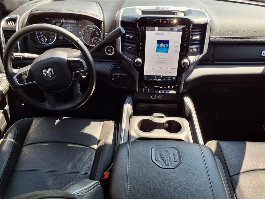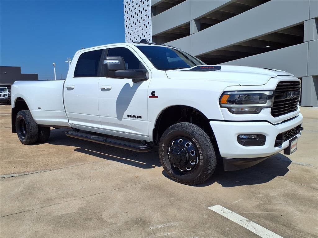 Apple CarPlay, Android Auto, Bluetooth Hands Free, Cooled Seats, Heated Rear Seats, Push Button Start, Smart Key, 4WD, Backup Camera, Bluetooth, Leather Seats, Navigation System, Remote Start, Tow Package, Trailer Package, Lariat Package, ANDROID AUTO, APPLE CARPLAY, BACKUP CAMERA, HEATED AND COOLED SEATS, LANE DEPARTURE WARNING, NAVIGATION, REMOTE KEYLESS ENTRY, 10 Speakers, 115V Auxiliary Rear Power Outlet, 12" Touchscreen Display, 18" x 8" Polished Aluminum Wheels, 220 Amp Alternator, 2nd Row In Floor Storage Bins, 4G LTE Wi-Fi Hot Spot, 6000# Front Axle w/Hub Ext, Active Noise Control System, Air Conditioning, Alexa Built-In, Apple CarPlay, Auto Adjust In Reverse Exterior Mirrors, Auto Dimming Exterior Passenger Mirror, Auto High Beam Headlamp Control, Auto Power-Folding Mirrors, Auto-Dimming Exterior Mirrors, Automatic temperature control, Black Exterior Truck Badging, Black Headlamp Bezels, Black Interior Accents, Black RAM Head Tailgate Badge, Black Tail Lamp Bezels, Black Wheel Center Hub, Blind Spot & Cross Path Detection, Body Color Grille Surround, Box & Rear Fender Clearance Lamps, Brake assist, Center Hub, Chrome Exterior Mirrors, Clearance Lamps, Connected Travel & Traffic Services, Connectivity - US/Canada, CTR Stop Lamp w/Cargo View Camera, Delay-off headlights, Disassociated Touchscreen Display, Dual Rear Wheels, Electronic Stability Control, Electronically Controlled Throttle, Exterior Mirrors Courtesy Lamps, Exterior Mirrors w/Heating Element, Exterior Mirrors w/Memory, Exterior Mirrors w/Supplemental Signals, Foam Bottle Insert (Door Trim Panel), For Details Visit DriveUconnect.com, For More Info, Call 800-643-2112, Forward & Reverse Utility Lights, Front dual zone A/C, Front LED Fog Lamps, Fully automatic headlights, Global Telematics Box Module (TBM), Gloss Black Grille Billets/Accents, Google Android Auto, GPS Antenna Input, GPS Navigation, HD Radio, Integrated Voice Command w/Bluetooth, Laramie Level 1 Equipment Group, LED Reflector Headlamps, LED Tail Lamps, Mirror Running Lights, Navigation System, Night Edition, Off-Road Information Pages, Panic alarm, ParkSense Front/Rear Park Assist System, ParkView Rear Back-Up Camera, Power Adjust Mirrors, Power Adjustable Pedals w/Memory, Power driver seat, Power Heat Fold Memory Telescopic Mirrors, Power steering, Power Telescoping Mirrors, Power windows, Power-Adjustable Convex Aux Mirrors, Quick Order Package 21H Laramie, Radio: Uconnect 5 Nav w/12.0" Display, Rain Sensitive Windshield Wipers, Rear 60/40 Folding Seat, Rear Power Sliding Window, Rear Window Defroster, Remote keyless entry, Remote Tailgate Release, Security system, Selectable Tire Fill Alert, SiriusXM Radio Service, SiriusXM w/360L, Speed control, Sport Performance Hood, Steering wheel mounted audio controls, Surround View Camera System, Tip Start, Towing Technology Group, Traction control, Trailer Reverse Guidance, Trailer Tow Pages, Wheels: 17" x 6.0" Polished Aluminum.