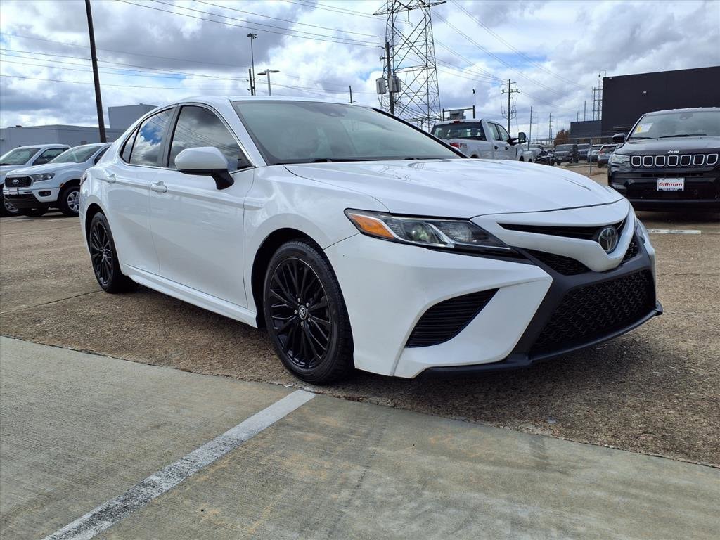 Gillman's Lifetime Engine Warranty lasts as long as you own your vehicle - free with the Gillman Pre-Owned Promise. If the vehicle isn't right for you, return it in purchase condition within 2 days or 200 miles as part of our Happy-Driving Guarantee. Discover reliability and sporty style with this White 2019 Toyota Camry SE 4dr Sedan. Powered by a fuel-efficient 2.5L I4 engine and smooth 8-speed automatic transmission, this Camry offers a comfortable ride with sport-tuned suspension and eye-catching exterior features like a lip rear spoiler and LED headlights. Enjoy peace of mind with advanced safety technologies, including Front Automatic Emergency Braking, Lane Keeping Assist, Adaptive Cruise Control, and a Rearview Camera. Inside, you'll find Apple CarPlay, a 7-inch touchscreen Entune infotainment system, Bluetooth, USB input, and a leather steering wheel. Convenience features like power-adjustable driver's seat, automatic climate control, keyless entry, and split-folding rear seats make every drive enjoyable. With its blend of comfort, technology, and Toyota's legendary dependability, this Camry SE is ready for your next adventure. All vehicles subject to prior sale. We are not responsible for typographical errors and may change information without notice. Photos may not depict the actual vehicle. Tax, title, and license fees not included. Dealer Discount available to all buyers. Vehicles purchased from Gillman Automotive Group include a Bring It Back Guarantee: return the vehicle in purchase condition within two days or 200 miles. New current-model-year vehicles and qualifying pre-owned vehicles (under 90,000 miles and less than 7 years old) are eligible. Guarantee is non-transferable and has no cash value. Lifetime Warranty available on select pre-owned vehicles. See dealer for details; restrictions may apply.